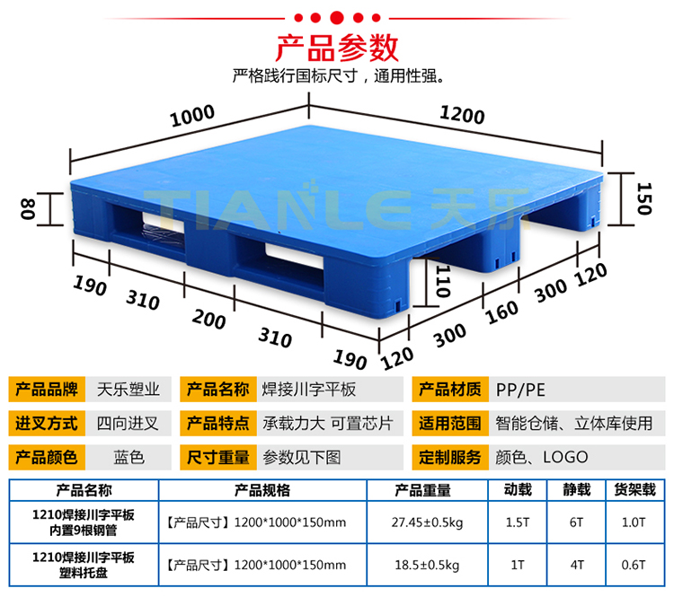 我公司擁有托盤焊接設(shè)備兩臺,主要生產(chǎn):1210焊接川字平板170mm高帶擋邊不帶擋邊托盤;1210焊接川字平板160mm高帶擋邊不帶擋邊托盤;1211焊接川字平板170mm高帶擋邊不帶擋邊托盤;1210焊接川字平板150mm高托盤。我公司提供產(chǎn)品定制、代加工服務(wù)。
